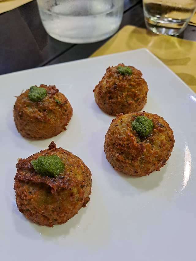 - Polpette di pane e formaggio, con rosmarino, origano, pepe e mozzarella filante