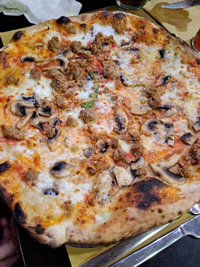 - Pomodoro, mozzarella, basilico, funghi, salsiccia, olio EVO