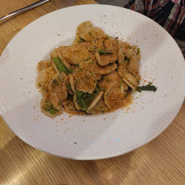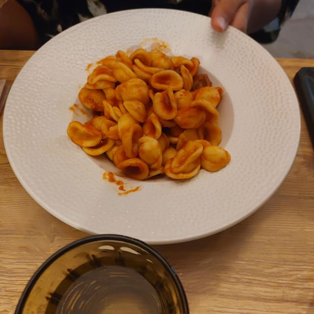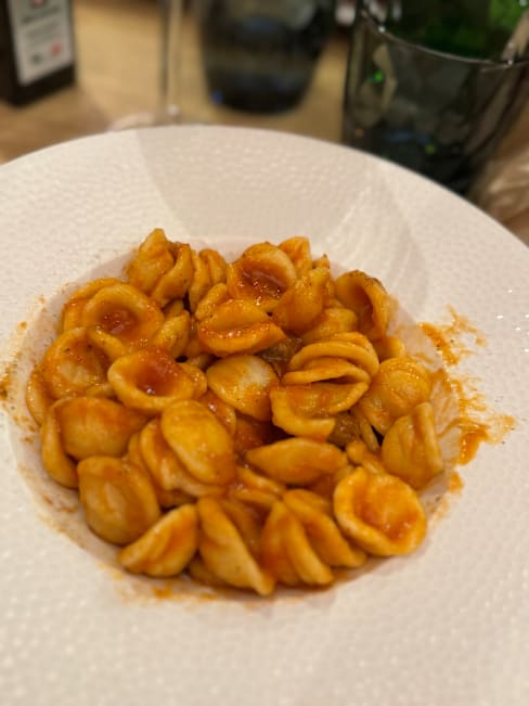 10/10We met our friends that were visiting Alberobello and needed only a light lunch before continuing their trip. So we only had a first course (orecchiette al grano arso and strascinate con cime di rape) and some wine. The food was great and nobody bothered us while we took our time to finish the wine and chatted about our kids and our jobs. Actually, the waiter just asked once if we wanted something else so I had a tasty tiramisù and we all had coffee. Very friendly and unoppressive service!