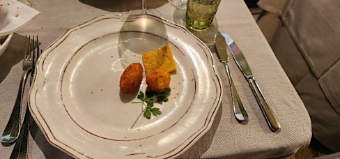 7/10The entrance of the restaurant is covered with the stickers of Michelin recommendations then you go inside you eat and you think what those stickers are doing there? This is traditional restaurant with extremely high overpriced dishes. We had Italian pasta Paccheri con scampi bottarga e porcini 26 euro!! On the plate we have found a few paccheri pasta and one prawn! Than was Warm seafood salad cost 28 euro (size supersmall), classic dish of Sicilian cuisine stuffed squid ( calamari ripieni) 28 euro, were gummy and uneatable like they were cooked day before and just warm up before serving. Totall mistake!