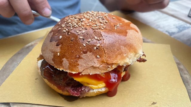 3/10We had to remind the waiter 4 times we booked with The Fork. When we got there there was no available table and we had to wait 15 min. We ordered two 250gr medium cooked hamburgers. Both were 180gr and one was way too cooked. I asked for a medium one because, even though I never had food go back in a kitchen, I usually just adapt, this one was really burnt. Another one of 180gr came out. I then pointed out we had ordered the 25p so the waiter, very nicely, had another one made, this time correctly (that we ended up splitting) . So yes, at the end we had two 180gr and one 250 for a total of 305gr each, but still... The service was slow and we had to point out everything, if not they would have left me with a burned small hamburger. Then again at the cash I had to show them the reservation with the 20% discount cause they told me they didn't think the fork made me book it. So weird.