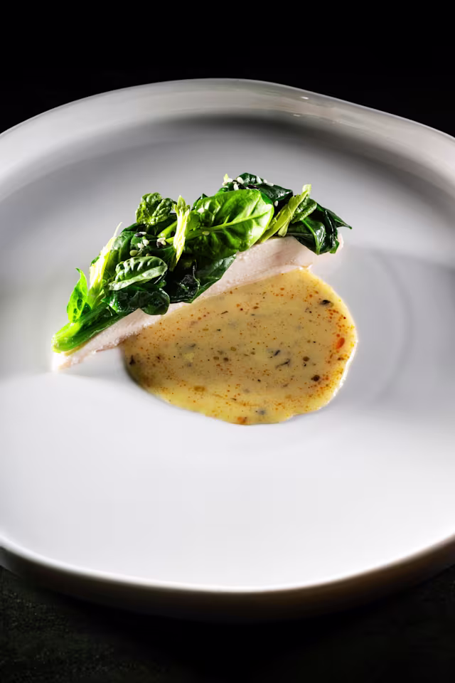 - Petto di pollo, spinaci saltati e salsa allo za'atar