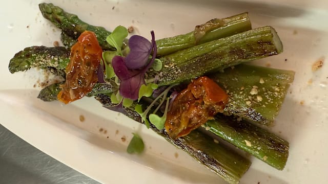 Espàrrecs blancs de navarra amb salsa verge i maionesa kimchi