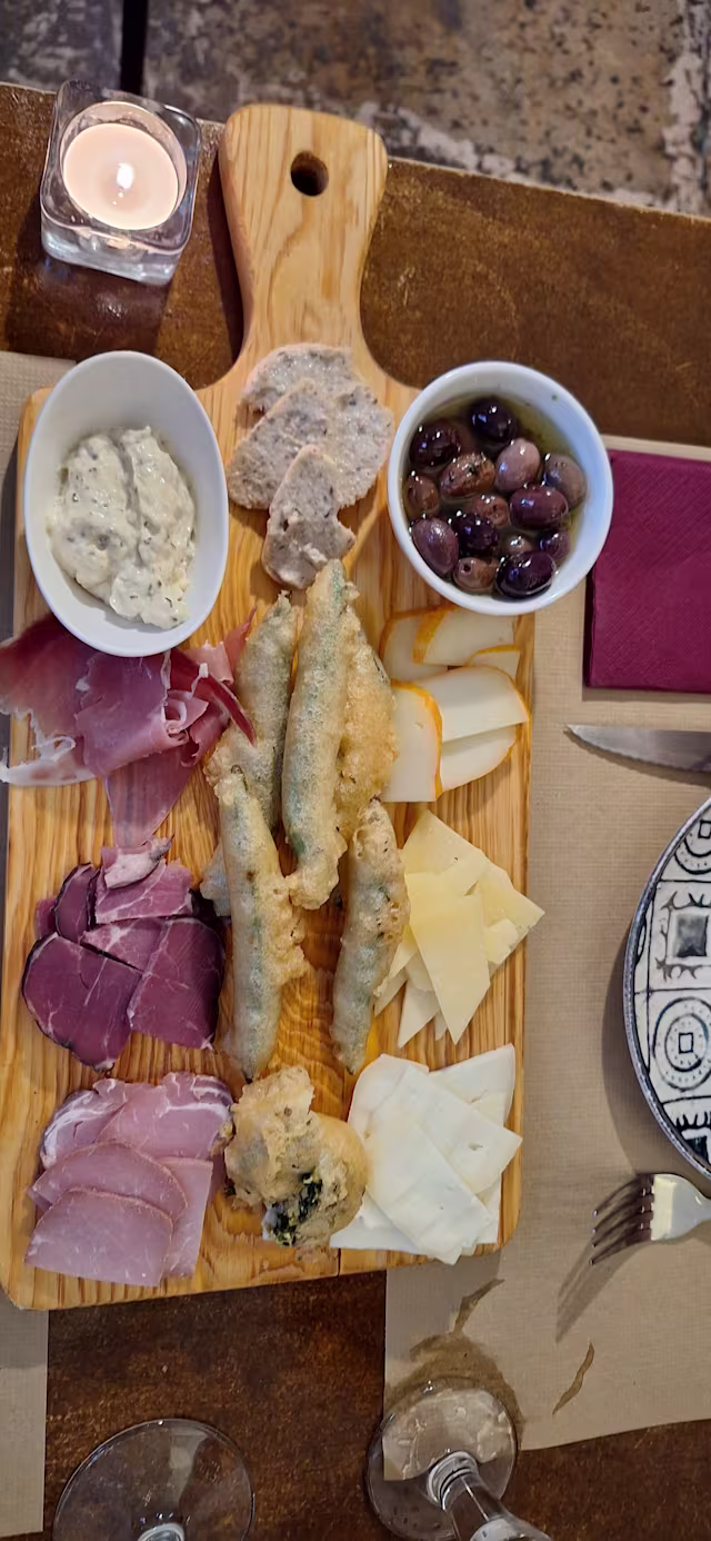 - (Ovos verdes, peixinhos da horta, azeitonas, queijos, enchidos, tostas e paté de sardinhas)