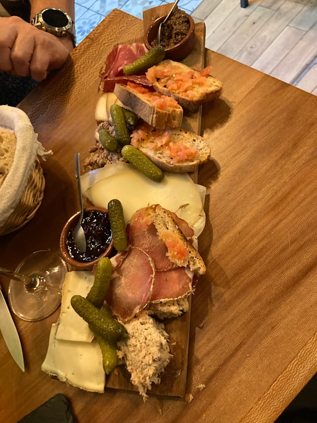 8.5/10Only charcuterie on the menu but plenty of different varieties meat, cheese, vegetarian or a mixture of above. The sharing platters are plentiful for 2 persons and reasonably priced at around 20euros. We also had a bottle of wine from the wine menu and are priced at 16euros upwards for a 75cl bottle. Our server was helpful in explain the meats, cheeses etc but then we didn't see him for some time and had to wait for the bill. Overall a nice experience and recommended