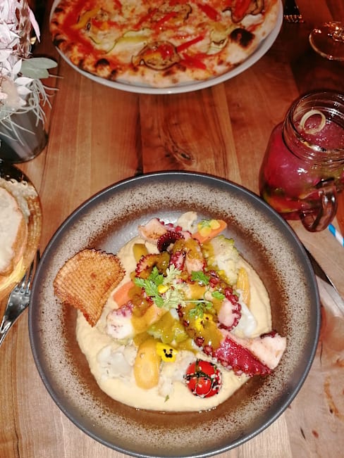 6/10We arrived a bit late but we’re still welcomed to our tables. Service was centred around one waiter who was extremely busy (on a Monday evening) which meant the service was slow but rushed. Starters were average burrata & foie gras. Main courses, pizza, linguine, seafood were better. Overall average and wouldn’t rush back, in my opinion the quality of Food doesn’t match the quality look & feel of the restaurant.