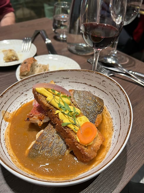 8/10Food was good! Bouillabaisse needs more broth/fish soup. Fish bits were smallish. All tasted very good.