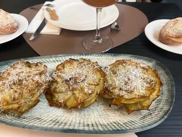 - Flores de alcachofa confitadas con parmesano rallado