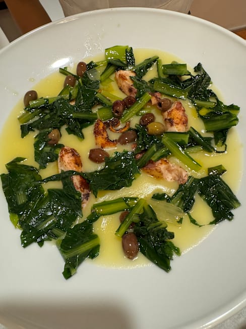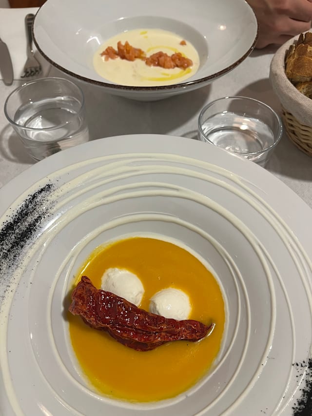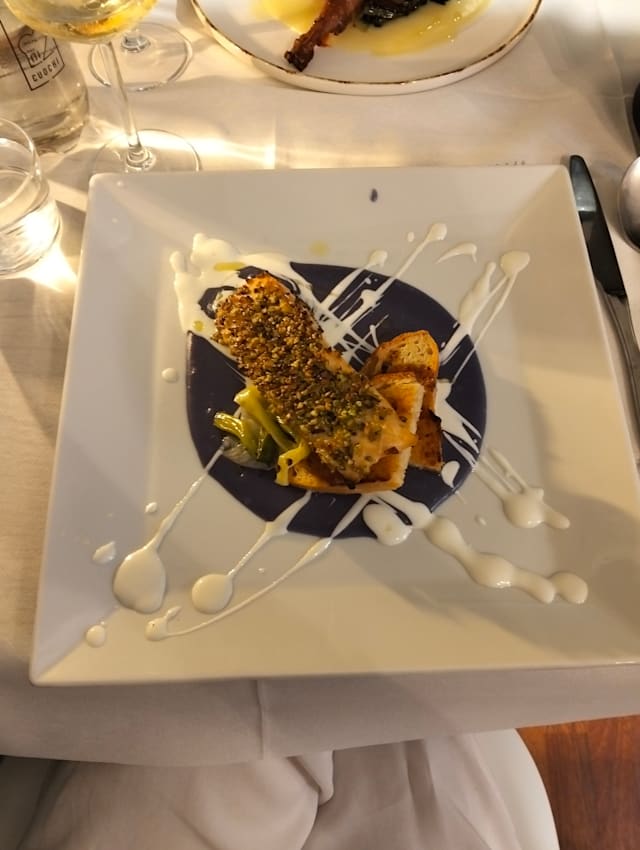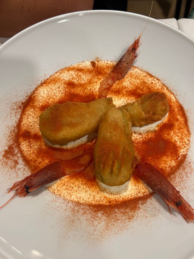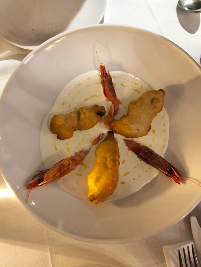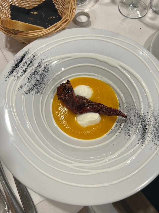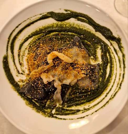 10/10This is a super restaurant. Interesting menus and delicious food and friendly attentive service. Well worth booking. I decided that it looked so good to have fried pumpkin flowers and shrimp in saffron cream (delicious), then black pasta, and rabbit and tiramisu. All beautifully presented and executed. I had wine by the glass and they treated me to an orange liquer on the house. They were also extremely kind. This restaurant is well worth a visit even if a bit further away. Go, try it!
