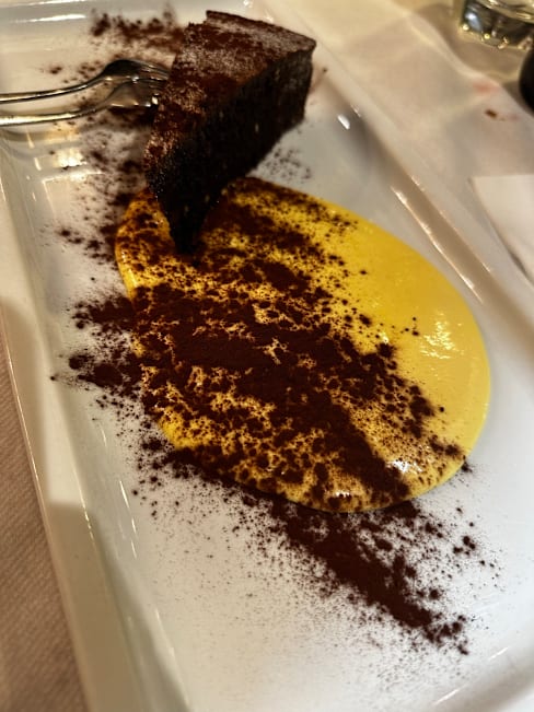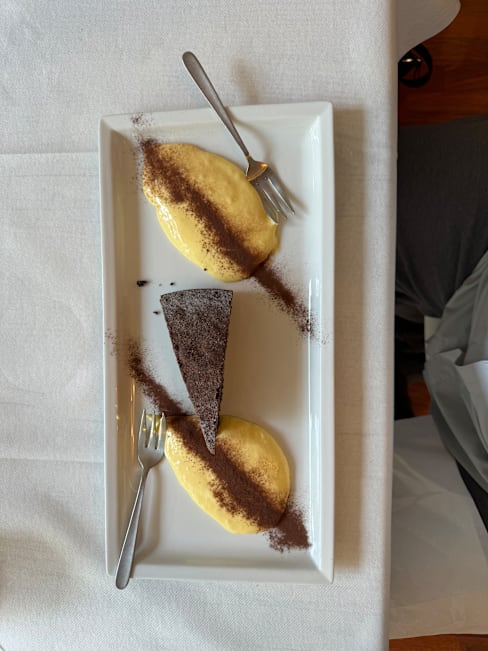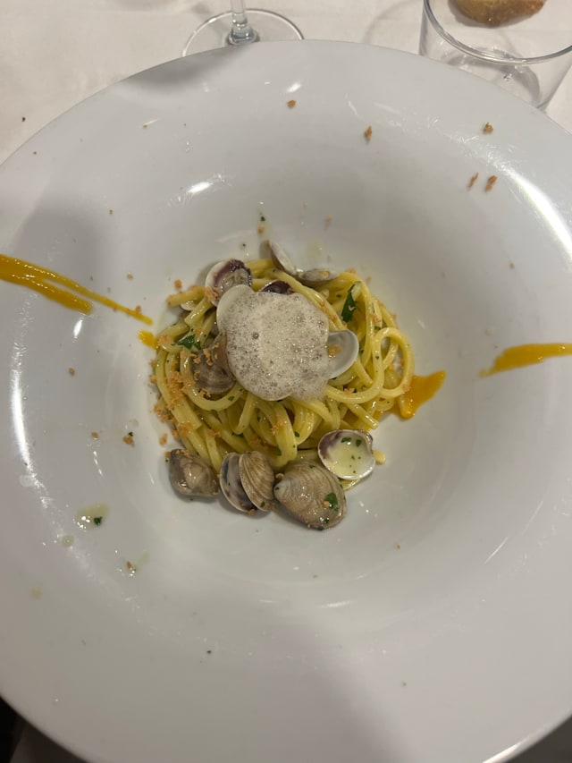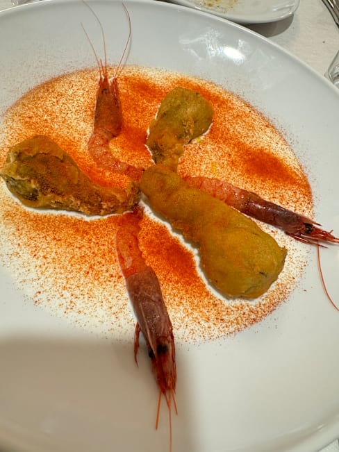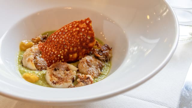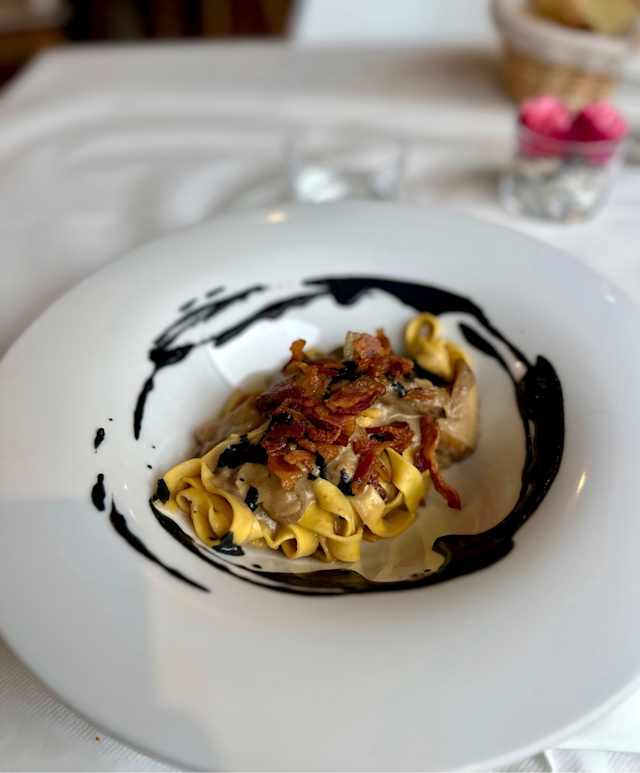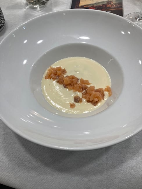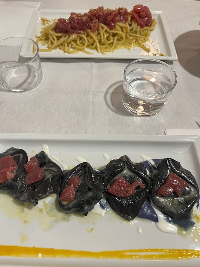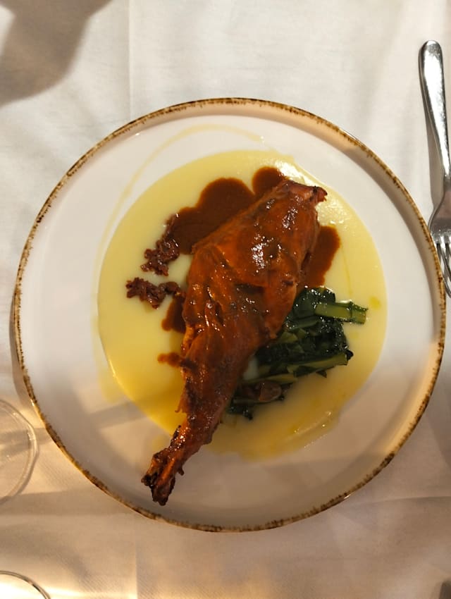 10/10This is a super restaurant. Interesting menus and delicious food and friendly attentive service. Well worth booking. I decided that it looked so good to have fried pumpkin flowers and shrimp in saffron cream (delicious), then black pasta, and rabbit and tiramisu. All beautifully presented and executed. I had wine by the glass and they treated me to an orange liquer on the house. They were also extremely kind. This restaurant is well worth a visit even if a bit further away. Go, try it!