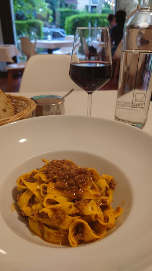 10/10We are from the United States. Our friends happen to be staying in the city center. We live in Umbertide and wanted to join them for lunch so we chose this restaurant in order for my friends to eat "out of the hustle and bustle" of the crowds. I'M SO GLAD WE DID. The wait staff spoke perfect English (although I did speak my "cave man" Italian as much as possible to them). The food was to die for. Wife: lasagna (not your typical lasagna) was a 9 out of 10. My tagliatelle was a 10. The desert: caprese cake with mascarpone creme sprinkled with cocoa powder was a 1000 out of 10. The wait staff did NOT bother us as we needed time to catch up with friends we haven't seen in several years. The staff made themselves available but NEVER approached the table without our invitation.....how wondeful. GRATZIE, GENTLEMEN.