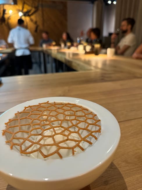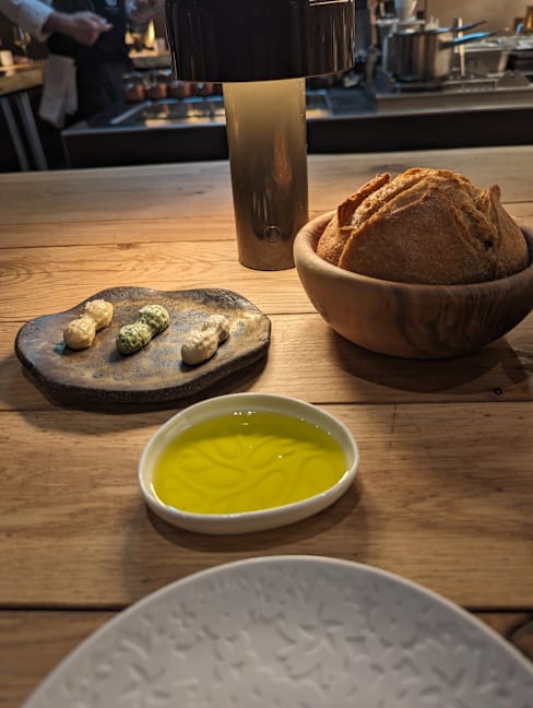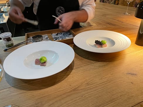 10/10+10very unique experience being able to see all of the work that goes into preparing a michelin dish. The service was great and I learned a lot chatting with the chefs plating the dishes. A personal touch I really appreciated was the chef letting us try balsamic vinegar with the olive oil for the bread when I mentioned we typically have bread straight with olive oil.