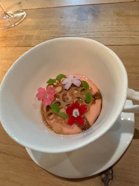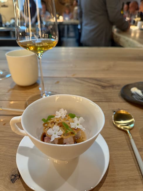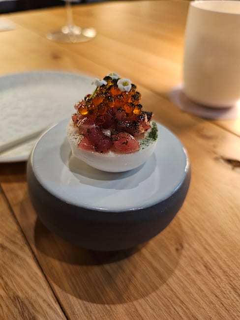 10/10wonderful reception, friendly staff and head chef made you feel at home instantly. The explanation of all the wines, ingredients and backstories behind some of the dishes made this quite the experience. The careful attention to detail resulted in getting plated with pieces of art during the entire menu.