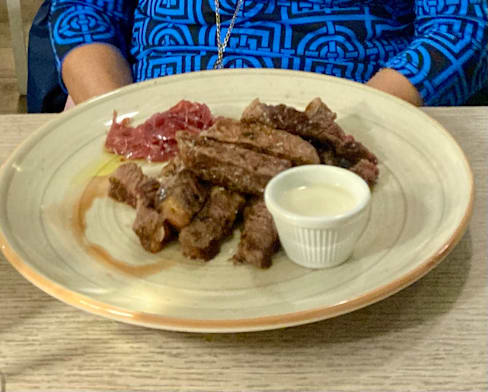 9/10We started with carpaccio and moved onto tagliata & filet, accompanied by a Donnafugata Nero D’Avola. For sides, a delicious tomato salad with capers & olives + a potato & spinach cake. To finish (and digest), Vecchio Amaro del Capo. The tagliata was good but the filet is NOT what we think of as filet; it was gristly and chewy. Service was excellent!