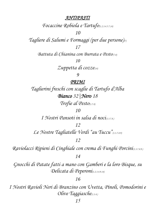 8.5/10Price for the foods and wines are good and honest. We ordered the truffle tasting menu and we were very satisfied for what we had paid. The service from the two staffs were great except food served a bit slow. We were seated outside and it was a bit disturbing by the passing cars, motors and trucks although that area is pretty quiet at night.. I suggest to sit indoor with AC. Also easy to find parking in nearby areas or only 10 mins walking distance from Brignole station. Will definitely be back again in future for others.