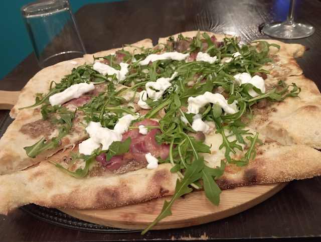 - Crema tartufata, fior di latte, funghi, speck, taleggio, rucola, stracciatella