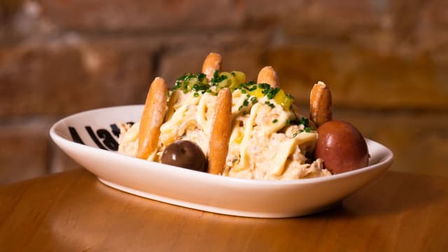 Guacamole, pico de gallo, quesos, jalapeños y pulled pork