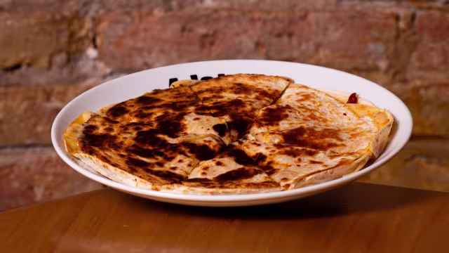 - Quesadilla de pollo de corral con chimichurri casero y queso fundido
