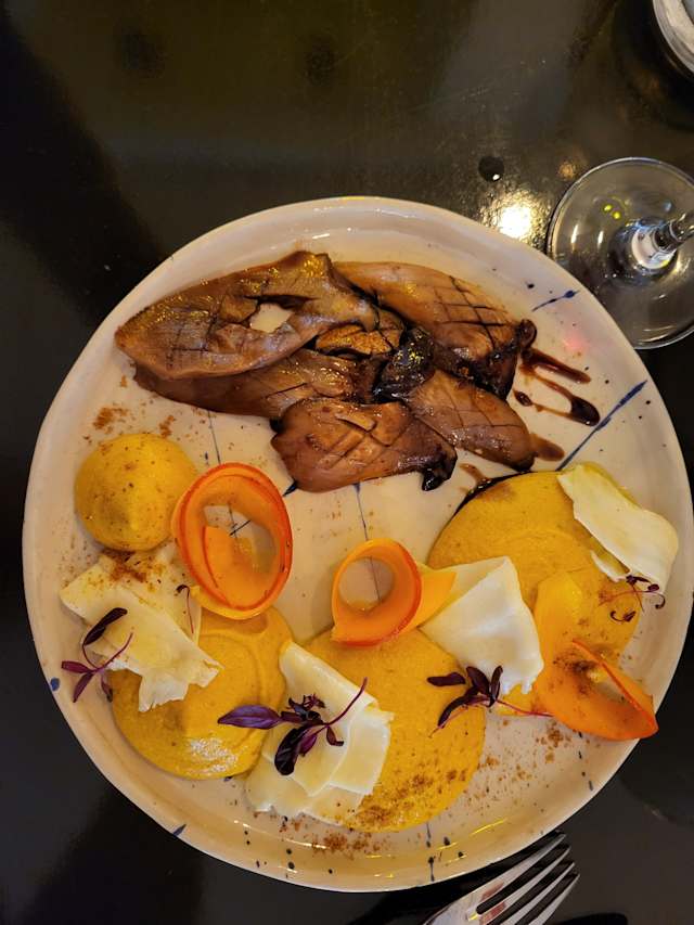 8/10Lovely setting, good service and food is good quality, beautifully presented and tasty. But disappointing that EVERYTHING is cold. We didn't see when reserving that this resto is for "crudivores". Also pretty pricy, especially the wine list - all the cheaper wines had sold out and the one we chose, which was not cheap, was very unpleasant (opinion of 7/7 à table). We were 3 vegetarians out of a 7 diners, Globally most of us enjoyed the originality and quality of this resto, but the cold food, price and lack of wine choices were disappointing.