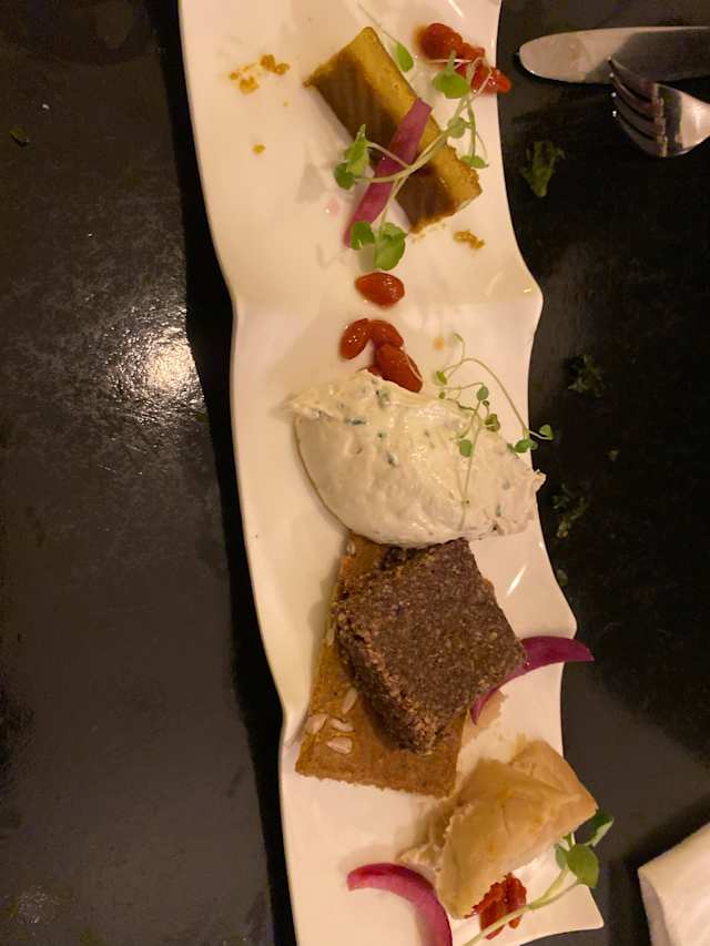 7.5/10The pros: original well presented tasty vegan dishes, nice ambiance, reasonable service. The cons: 1) all the dishes were cold - without any warning; 2) the wine was extortionate - at 39 € the cheapest bottle on the menu was was practically undrinkable!; 3) the portions were small, but worst surprise of all: 4) they served no bread at all unless you paid extra - le pain est payant! Pour un resto déjà pas donné, ça laisse un gout de pingre.