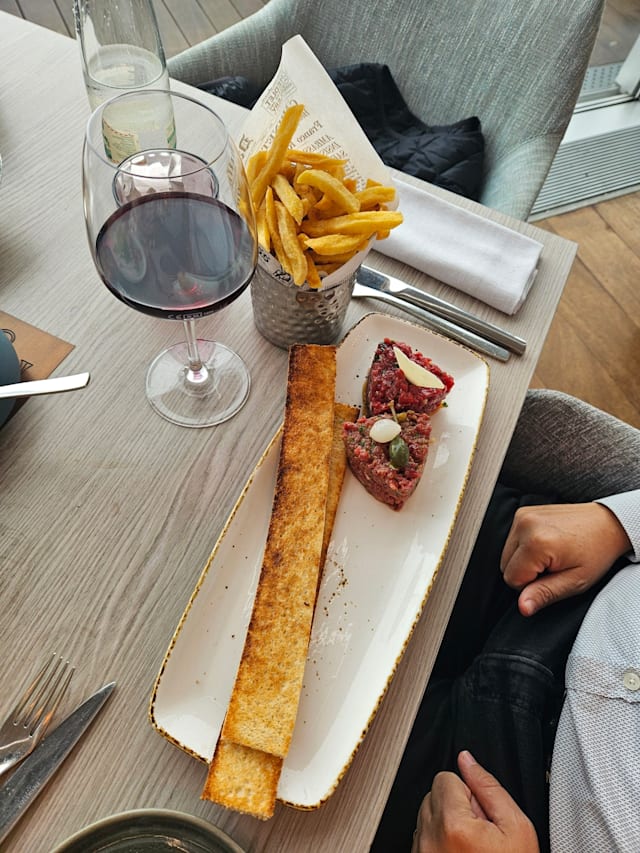 9/10Great and easy location; wonderful views and a great ambience. We had a wonderful server who was quick and attentive (sorry, I did not get her name) but she was charming. Steaks x 3 were cooked to perfection and very tasty and all food was delicious. Only let-down was that 2 out of the 4 deserts (creme brûlée and chocolate dome) were not available by 8.30pm which was a disappointment, but other than that we loved it and will be back.