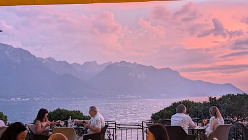10/10My husband and I are here in Switzerland from the Washington DC area. I was intrigued by their creative menu. Our meal and wine was amazing. You are surrounded by the view of the lake and the Alps and it transports you to a place of serenity. They went above and beyond in service. There was a dessert I had wanted to try but the menu had just changed from my trip planning last week. I called ahead of time to inquire about the dessert. They currently did not have that exact dessert. They were, however, able to modify a dessert currently available with the same ingredients. These ingredients included things we tried during our week in Switzerland, double cream (Geneva), meringue (Meiringen), wine of Valais reduction (Sierre), and Swiss flag made of cocoa. This made one of our top experiences in Switzerland! Highly recommend. Wonderful staff! We look forward to coming back!
