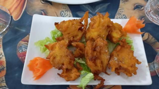 - (cipolle marinate con farina di ceci e fritte in pastella)