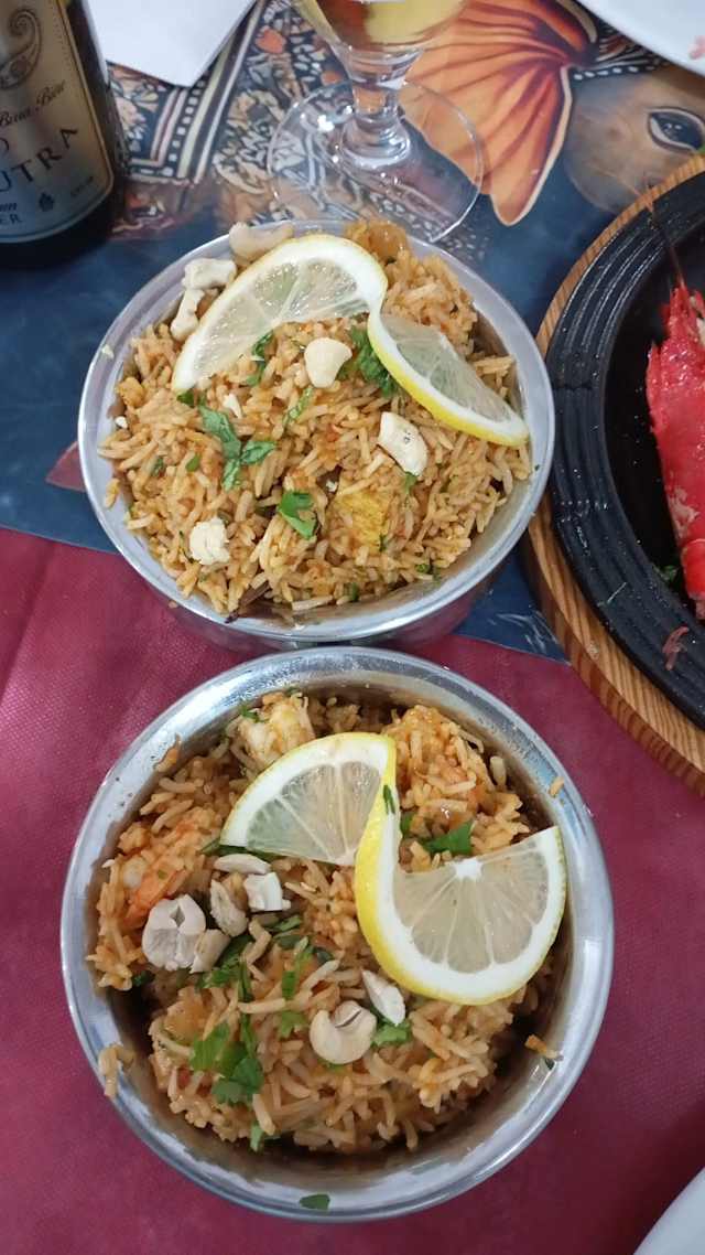 - (gamberetti cotti con riso basmati profumato allo zafferano e spezie)