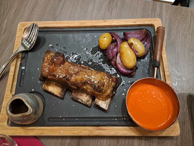 - Asado de tira cocinado durante 12h a la brasa, patatas baby y mojo rojo