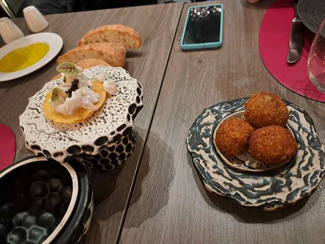 - Tartar de corvina, con cítricos, raifort y tosta de maiz crujiente