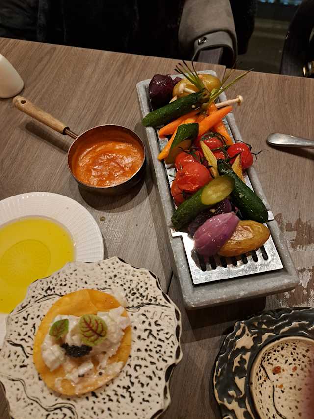- Verduras baby a la brasa con salsa romesco de tomates parrilla