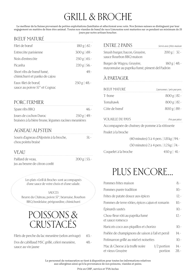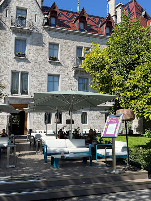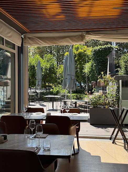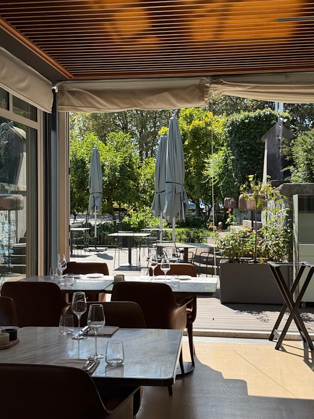 10/10The winter garden like terrace offers a private space close to the waterfront with a beautiful view of the lake. All this might distract from the friendly but respectful service and delicious food. Steakhouse style but sophisticated and plain good! On the pricey side but worth it. Have yourselves a grand time in Ouchy (Lausanne's historic port neighborhood).