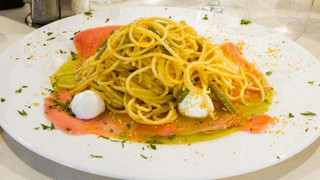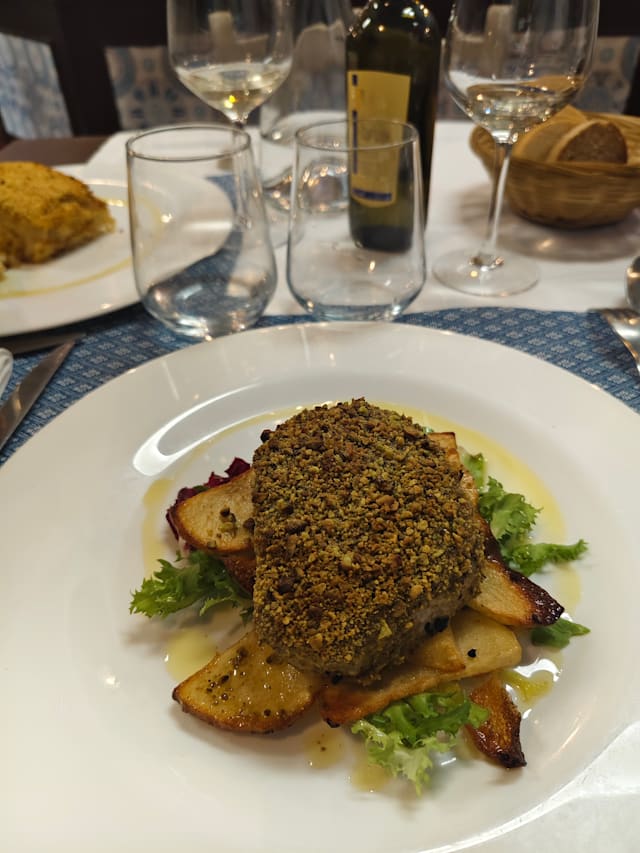 10/10The owner of this restaurant is from Salerno, and the establishment specializes in seafood dishes. There is a wide variety of fish to choose from, prepared in numerous ways. We opted for the crispy pistachio-crusted salmon, which is a very unique preparation. The fresh fish appetizers were also impressive. Every dish here is delicious, and if I ever return to this city, I will definitely choose this restaurant again.