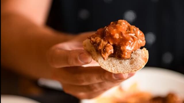 Polpette di Manzo e Maiale, Formaggio, Pane, Uovo, Prezzemolo, Pepe, Olio , Salsa di Pomodoro.€ 8.00 Porzione