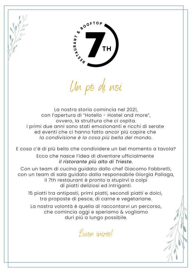 9/10This hidden restaurant in the centre of Triest (Part of a hotel/coworking building - without "TheFork" we would not have found it) is offering a small but really excellent menue for allmost everybody (dishes for meat and fish eaters as well as vegetarians). Sitting on the roof top having a look over the sea and the city of Triest is an additional highlight, however, some sunshades woulde be nice (at least if your are sitting on the terrace in the summer before 8 pm)