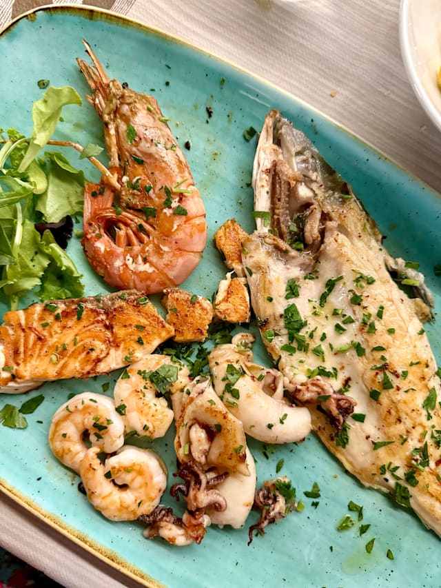 Capasante, insalatina di mare,salmone, gamberi,ostriche