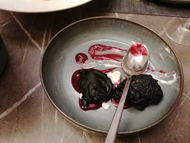 - Gnocchi di patata viola con vongole e funghi porcini