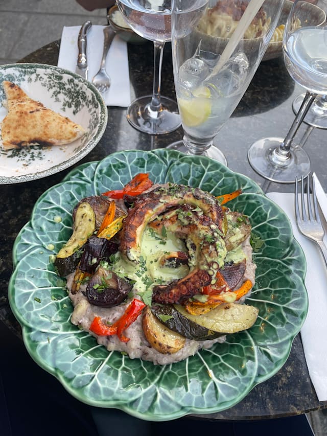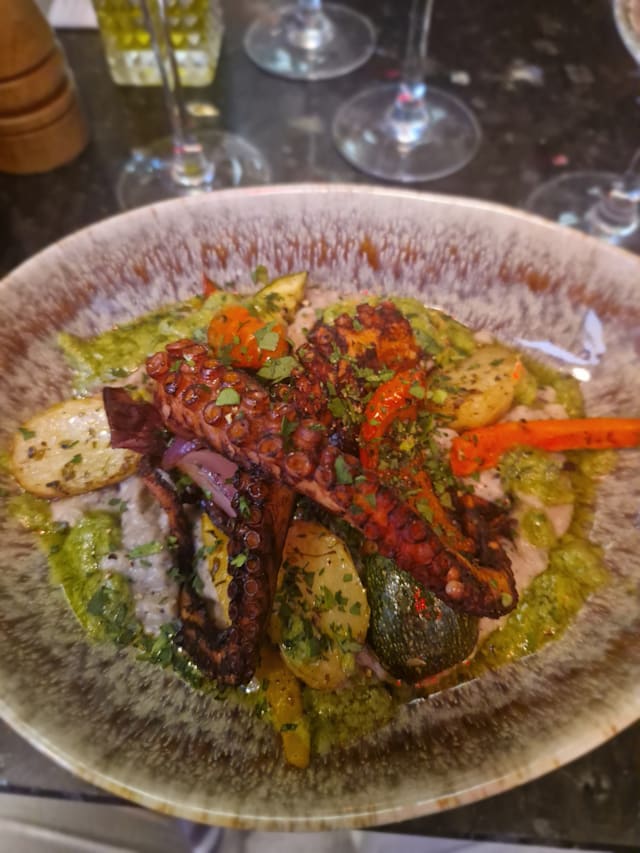 6.5/10We were seated in the back of the reastaurant, it looked good but was very empty. The service was not the best. Automatically charged us for water but offered the next table tap water for example. Food was good but the waiter kept asking if we were done.