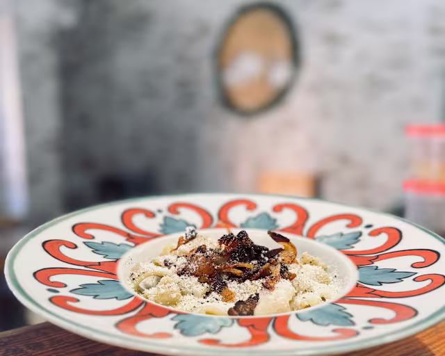 - Pasta romana con huevo, guanciale, queso pecorino y pimienta negra
