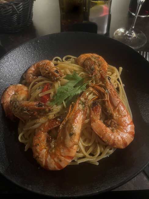7/10Bruchetta was a bit of a dissapointment, not toasted enough and not to much taste either. I had the pasta with scrimps, and it tasted good and there was plenty of pasta. Wine was decent, I had a 1/4 liter of Nero.