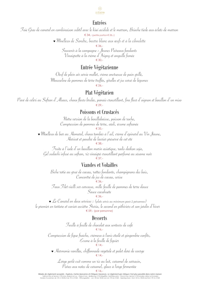 8/10Typical high French cuisine presented well and tasty. Some of staff acted a bit haughty but generally professional. Lovely setting amidst the crowded streets of Colmar.