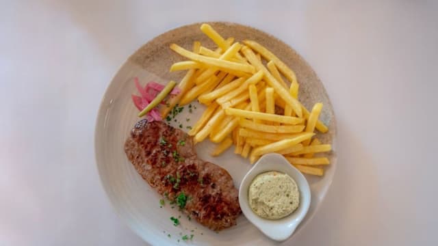 Entrecôte de cheval tendre et savoureuse avec accompagnement au choix.
