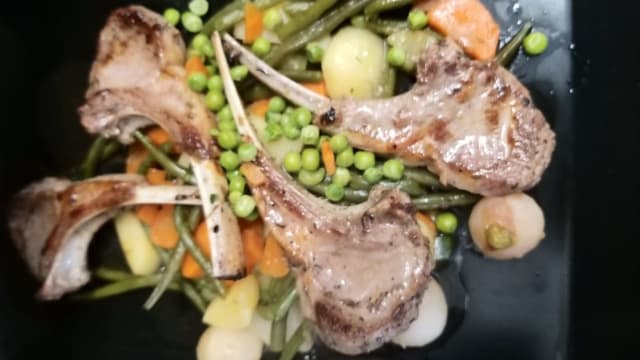 Côtelettes d'agneau roti au thym aux légumes sautés