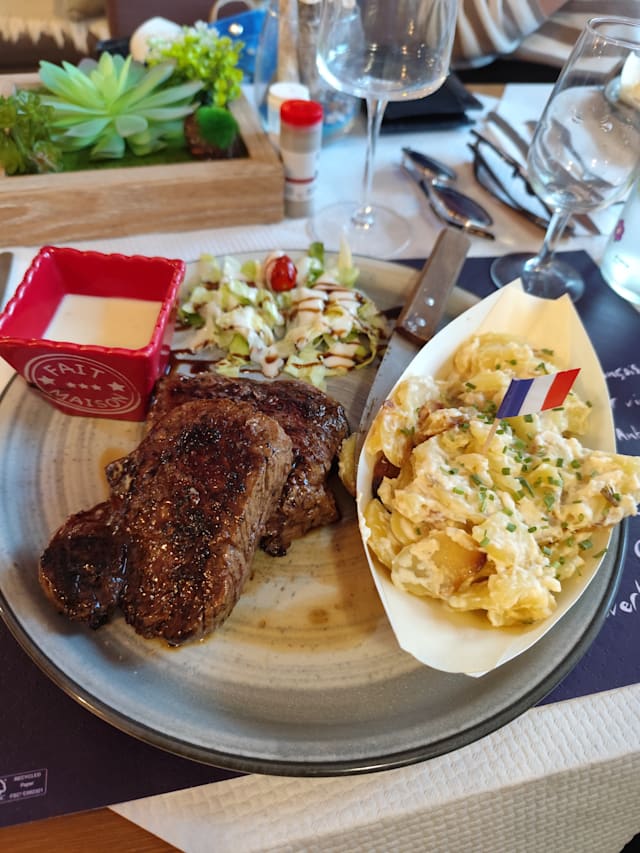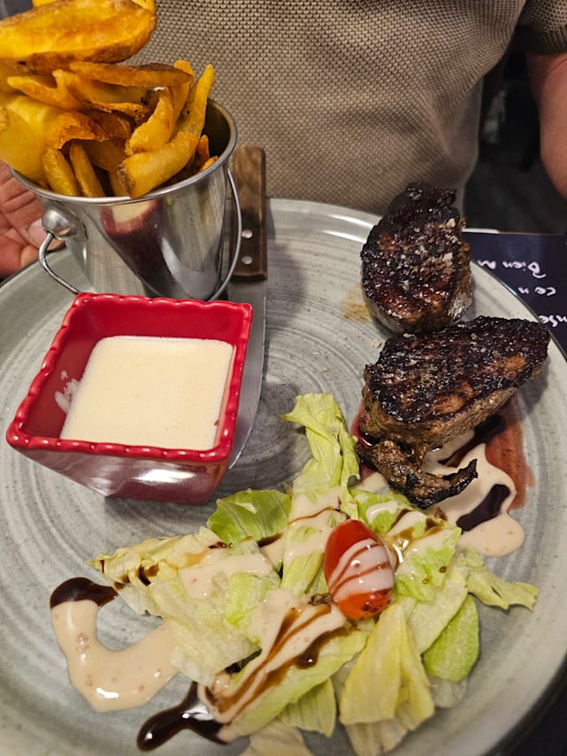 8.5/10Superb kir royale and a lovely bottle of Margaux. Fabulous burgers, steak and crêpes. Prune and Armagnac ice cream was delicious. Authentic French bistro atmosphere. Welcoming staff. Very good value for money, especially for Épernay.