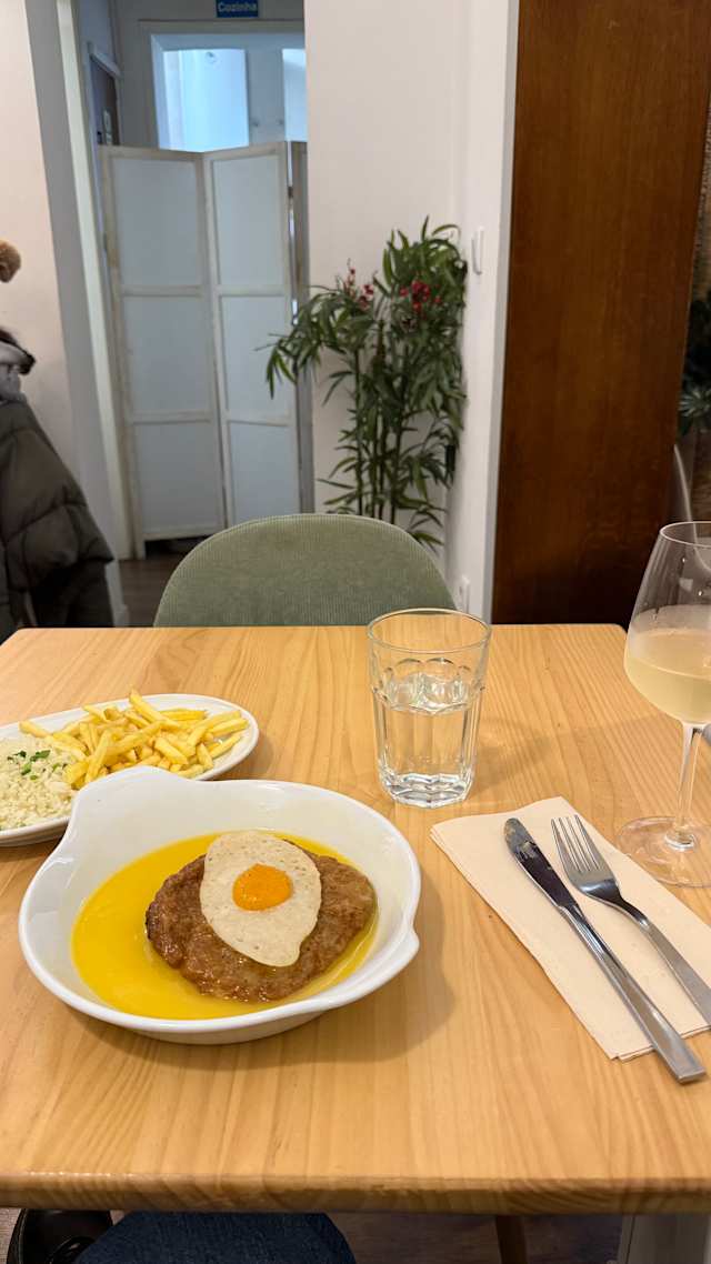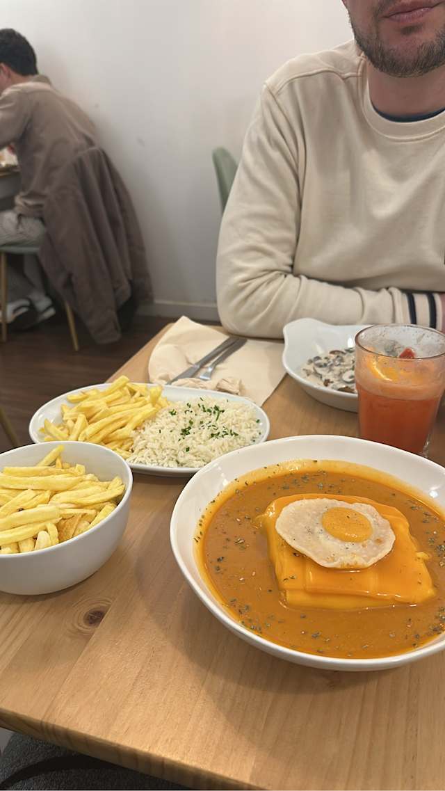- Típico prato portuense, com pão, bife de seitan, tofu fumado e chouriço vegetal, envoltos num delicioso molho caseiro com "ovo" estrelado por cima, acompanhado com batata frita caseira.