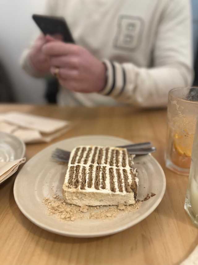 - Bolo tradicional de bolacha com creme de “manteiga” e leite condensado caseiro.