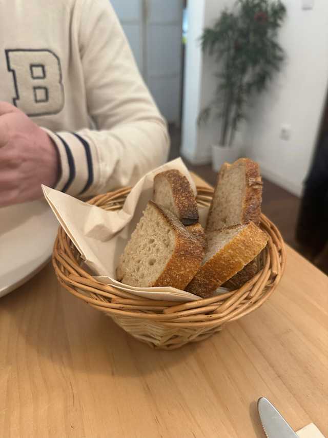 - Três tipos de cogumelos, shimeji, paris e pleurotus, no molho clássico de coentro, alho e vinho branco. Acompanhado de pão artesanal massa-mãe. Para opção sem glúten troque o pão.