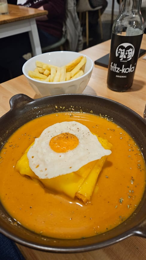 9/10Good food. 3 of us chose the fake Bacalhau com natas and 1 chose the Francesinha. Very good portions. Staff are friendly.