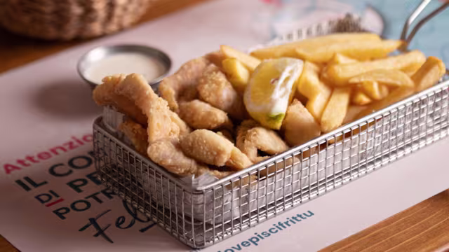 - Calamari, Cappuccetto, Merluzzo, Gambero l.4, Patatine fritte, Sarde "Allinguate", Uggiolo o Latterino