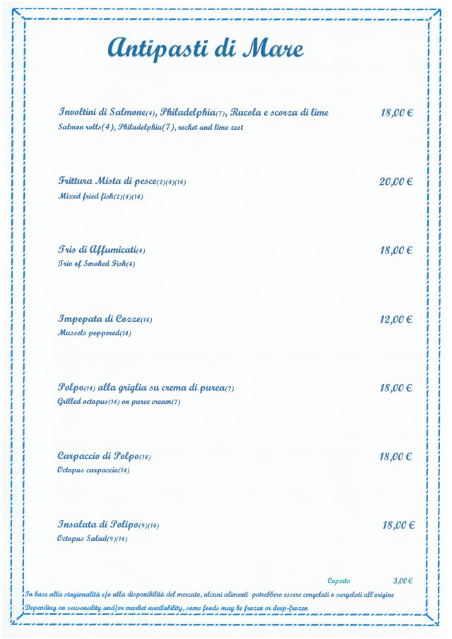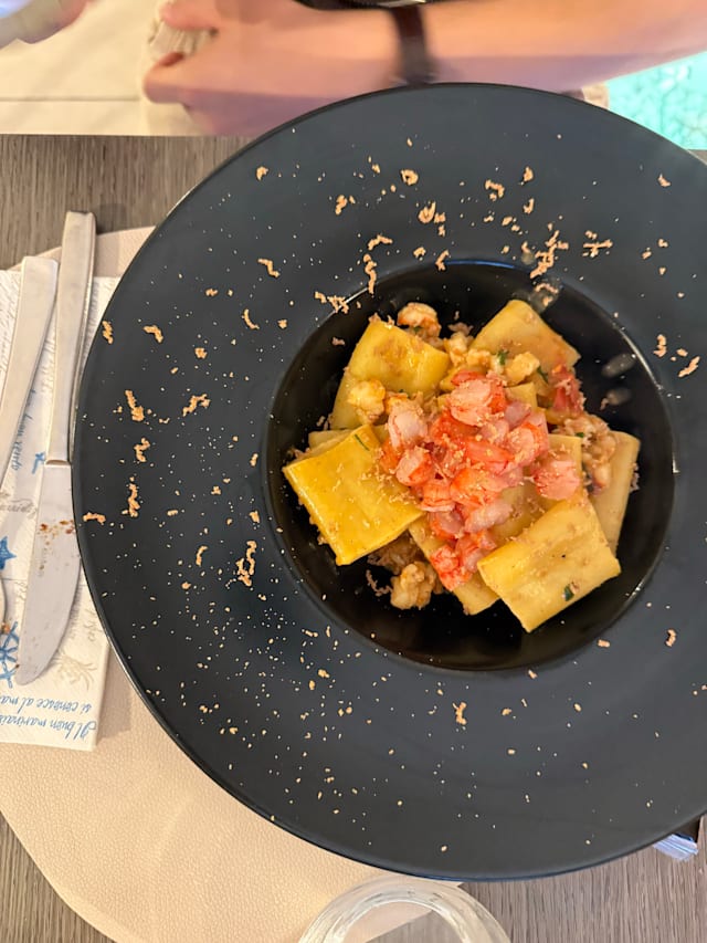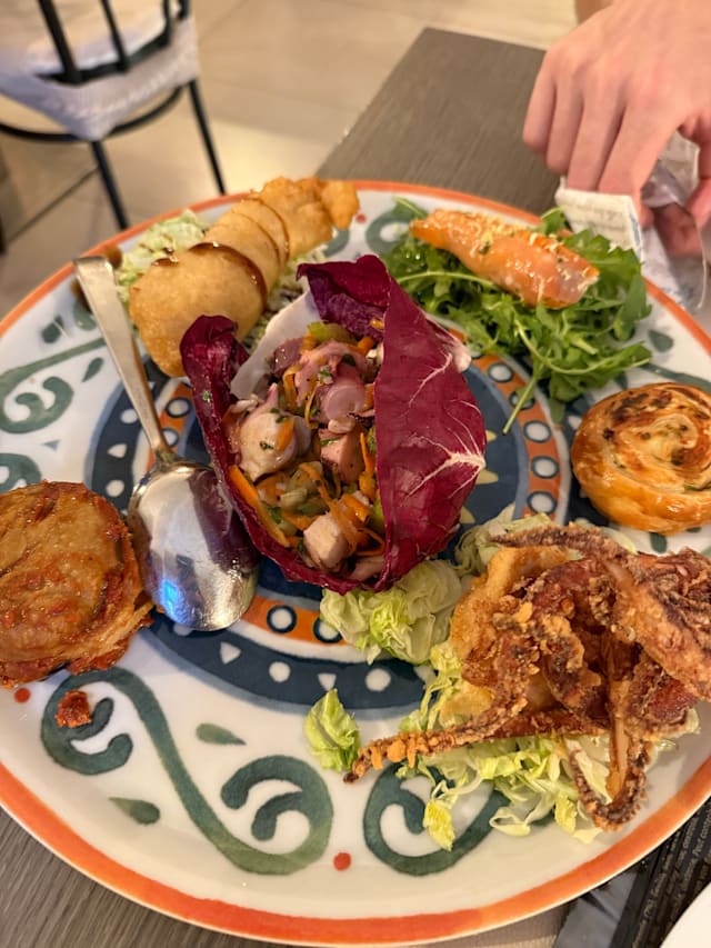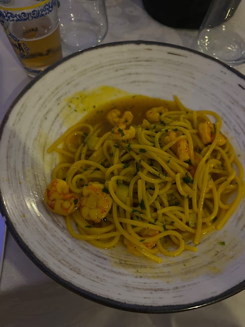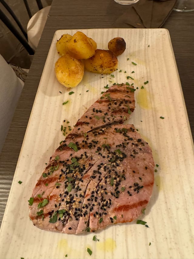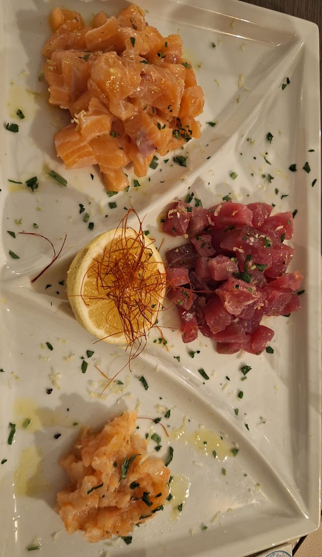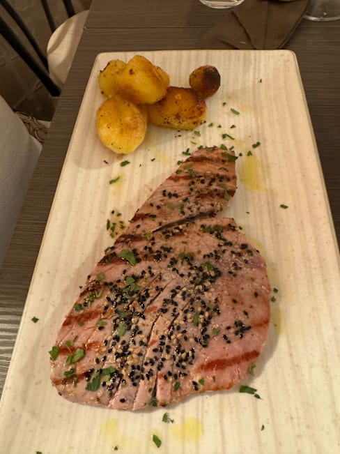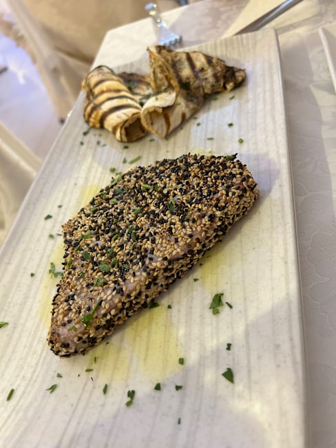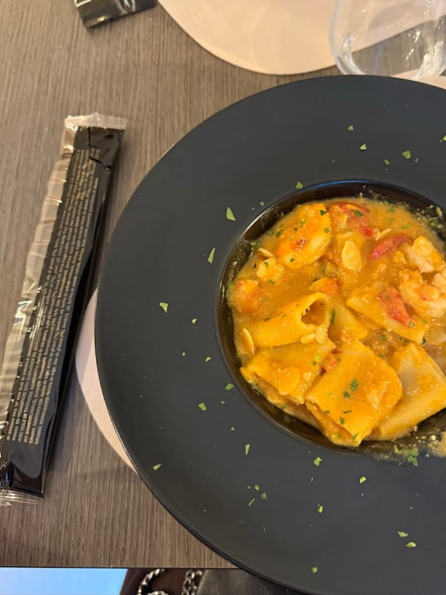 5/10Very average restaurant. Noticed that other tables were given bread and breadsticks. We just got dry bread. Had to ask for Olive Oil. Had prawns with pasta - nice Al dente pasta and sauce lacked prawns, tuna was over powered by sesame seeds, swordfish rolls totally LD kef flavour and were dry. The cold tinned carrots served with both mains were a disappointment when there are such lovely fresh ingredients around.